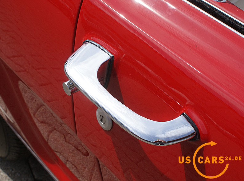 AUSSTATTUNG: C4 Cruise-O-Matic Automatikgetriebe, Bremskraft unterstützte Scheiben-Bremsen vorne, Servo-Lenkung, Elektrisches Cabrio Verdeck, Cabriodach Persenning, Pony Innen-Ausstattung, Pony Türverkleidungen, Leder Ausstattung zweifarbig Rot/Weiß, 5er Armatur, Holz Cockpit und Handschuhfachdeckel, Holz Lenkrad, Sicherheitsgurte vorne mit Pony-Emblem, Fußmatten mit Pony Emblem, Rückfahrscheinwerfer, Getönte Verglasung, Tag/Nacht Innenspiegel, Aussenspiegel auf Fahrer- und Beifahrerseite, Chrom HIPO Luftfilter und Ventildeckel, Chrom Motorölwanne, GT Doppel-Auspuff Anlage mit Trumpet Endstücken, GT Frontgrill mit Nebelscheinwerfern, GT Decor Streifen, GT Embleme, 14 Zoll Styled Steel Wheels mit neuer Weißwandbereifung etc.