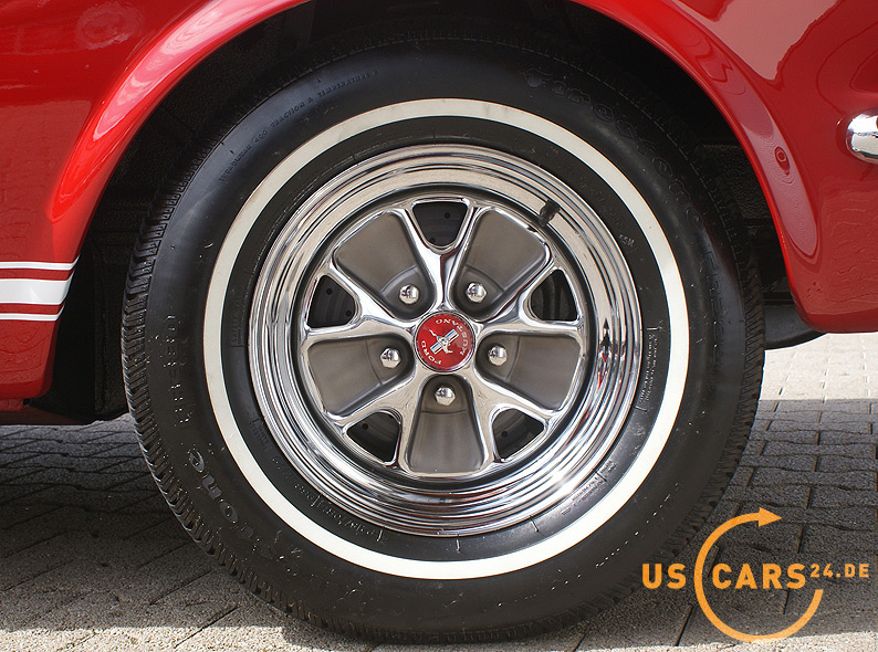 AUSSTATTUNG: C4 Cruise-O-Matic Automatikgetriebe, Bremskraft unterstützte Scheiben-Bremsen vorne, Servo-Lenkung, Elektrisches Cabrio Verdeck, Cabriodach Persenning, Pony Innen-Ausstattung, Pony Türverkleidungen, Leder Ausstattung zweifarbig Rot/Weiß, 5er Armatur, Holz Cockpit und Handschuhfachdeckel, Holz Lenkrad, Sicherheitsgurte vorne mit Pony-Emblem, Fußmatten mit Pony Emblem, Rückfahrscheinwerfer, Getönte Verglasung, Tag/Nacht Innenspiegel, Aussenspiegel auf Fahrer- und Beifahrerseite, Chrom HIPO Luftfilter und Ventildeckel, Chrom Motorölwanne, GT Doppel-Auspuff Anlage mit Trumpet Endstücken, GT Frontgrill mit Nebelscheinwerfern, GT Decor Streifen, GT Embleme, 14 Zoll Styled Steel Wheels mit neuer Weißwandbereifung etc.