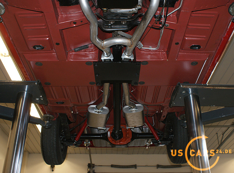 AUSSTATTUNG: C4 Cruise-O-Matic Automatikgetriebe, Bremskraft unterstützte Scheiben-Bremsen vorne, Servo-Lenkung, Elektrisches Cabrio Verdeck, Cabriodach Persenning, Pony Innen-Ausstattung, Pony Türverkleidungen, Leder Ausstattung zweifarbig Rot/Weiß, 5er Armatur, Holz Cockpit und Handschuhfachdeckel, Holz Lenkrad, Sicherheitsgurte vorne mit Pony-Emblem, Fußmatten mit Pony Emblem, Rückfahrscheinwerfer, Getönte Verglasung, Tag/Nacht Innenspiegel, Aussenspiegel auf Fahrer- und Beifahrerseite, Chrom HIPO Luftfilter und Ventildeckel, Chrom Motorölwanne, GT Doppel-Auspuff Anlage mit Trumpet Endstücken, GT Frontgrill mit Nebelscheinwerfern, GT Decor Streifen, GT Embleme, 14 Zoll Styled Steel Wheels mit neuer Weißwandbereifung etc.