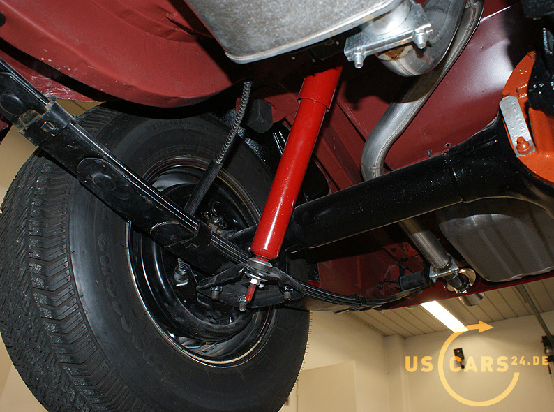 AUSSTATTUNG: C4 Cruise-O-Matic Automatikgetriebe, Bremskraft unterstützte Scheiben-Bremsen vorne, Servo-Lenkung, Elektrisches Cabrio Verdeck, Cabriodach Persenning, Pony Innen-Ausstattung, Pony Türverkleidungen, Leder Ausstattung zweifarbig Rot/Weiß, 5er Armatur, Holz Cockpit und Handschuhfachdeckel, Holz Lenkrad, Sicherheitsgurte vorne mit Pony-Emblem, Fußmatten mit Pony Emblem, Rückfahrscheinwerfer, Getönte Verglasung, Tag/Nacht Innenspiegel, Aussenspiegel auf Fahrer- und Beifahrerseite, Chrom HIPO Luftfilter und Ventildeckel, Chrom Motorölwanne, GT Doppel-Auspuff Anlage mit Trumpet Endstücken, GT Frontgrill mit Nebelscheinwerfern, GT Decor Streifen, GT Embleme, 14 Zoll Styled Steel Wheels mit neuer Weißwandbereifung etc.