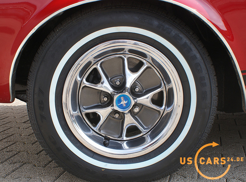 AUSSTATTUNG: C4 Automatikgetriebe, Servo-Lenkung, Bremskraft unterstützte Scheiben-Bremsen vorne, Klimaanlage, Tilt-Away Lenkrad, Elektrisches Cabrio Verdeck, Cabrio Persenning, Deluxe Innen-Ausstattung, Alu-Vertäfelung an den Türverkleidungen - Cockpit - Mittelkonsole, Mittelkonsole, Leder Innen-Ausstattung, Deluxe Sicherheitsgurte vorne und hinten, Motorhaube mit integrierten Blinkern, Styled Steel Wheels, Weißwand Bereifung 195/75 R14, GT Frontgrill mit Nebelscheinwerfern, GT Doppel Auspuffanlage, GT Decor Streifen, GT-A Embleme, GT Tankverschluß, Von innen verstellbarer Außenspiegel auf der Fahrerseite, Rückfahrscheinwerfer, Getönte Verglasung, Velour Fußmatten vorne, Tag/Nacht Innenspiegel, Alu Einstiegsleisten, Einstiegsbeleuchtung, Rocker Panel Moldings - Alu, Radlauf Verkleidung - Alu, Heckbleck Verkleidung, Ventildeckel - Powered by Ford etc.
