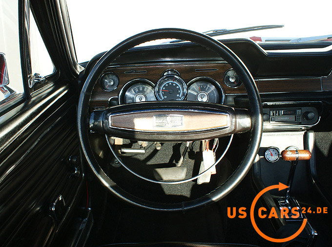 351er Windsor 5.8L V8 Motor mit C6 Automatikgetriebe, Kompletter Shelby GT350 Umbau - Shelby Front, Shelby Motorhaube mit Twist Lock, Shelby Heck mit Spoiler, Shelby Rückleuchten, Shelby Tankverschluss, Shelby Embleme, Shelby Rally Streifen over the top und an den Einstiegen, Shelby Side Scoops, Shelby Window Scoops, Cobra Lenkrad - Konsolendeckel und Schaltknauf, Sicherheitsgurte mit Shelby Emblem, Gurthalter in der Mittelkonsole, 15 Zoll Shelby Alufelgen mit neuer Goodyaer Eagle II Bereifung in der Größe 235/60 R15, Cobra Luftfilter, Doppel-Auspuff, Servo Lenkung, bremskraftunterstützte Bremsen vorne, Nebelscheinwerfer, Leder-Ausstattung, Innenraum mit Holzakzenten und Cobra Jet Emblem, Umlegbare Rücksitzbank, Cockpit mit 5 Armaturen, Drehzahlmesser Zusatzarmatur von Sun Super auf der Lenksäule, Zusatzarmaturen von Sunpro in der Mittelkonsole für Öldruck und Motortemperatur, Volle Mittelkonsole etc.