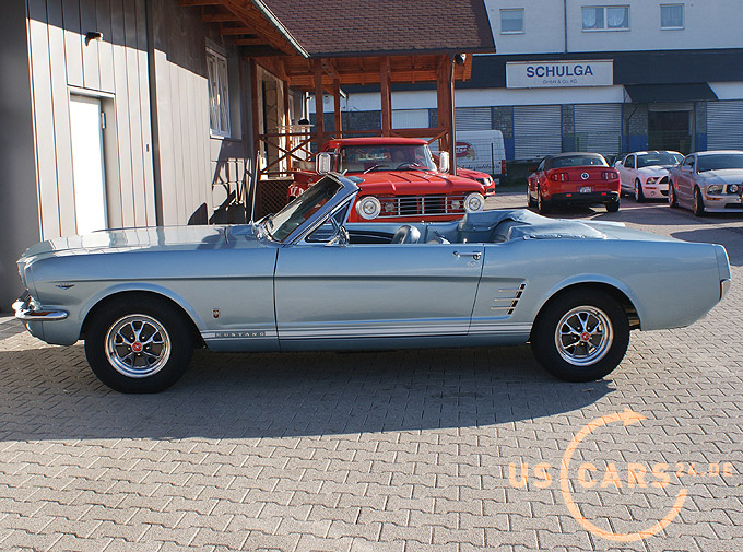 AUSSTATTUNG: 289er 4.7L V8 Motor mit Schaltgetriebe, GT Frontgrill mit Nebelscheinwerfern, GT Trumpet Doppel-Auspuff, GT Styled Steel Wheels mit neuer 205/70/R14 Bereifung, GT Decor und Embleme, GT Tankverschluss, Original Leder Innen-Ausstattung zweifarbig, Servo-Lenkung, Sicherheitsgurte vorne und hinten, Elektrisches Cabrio Verdeck, Cabrio Persenning, Interior Lighting Paket, Aussenspiegel auf Fahrer- und Beifahrerseite, Cockpit mit 5 Armaturen etc.