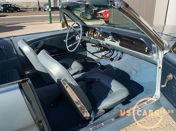 AUSSTATTUNG: 289er 4.7L V8 Motor mit Schaltgetriebe, GT Frontgrill mit Nebelscheinwerfern, GT Trumpet Doppel-Auspuff, GT Styled Steel Wheels mit neuer 205/70/R14 Bereifung, GT Decor und Embleme, GT Tankverschluss, Original Leder Innen-Ausstattung zweifarbig, Servo-Lenkung, Sicherheitsgurte vorne und hinten, Elektrisches Cabrio Verdeck, Cabrio Persenning, Interior Lighting Paket, Aussenspiegel auf Fahrer- und Beifahrerseite, Cockpit mit 5 Armaturen etc.