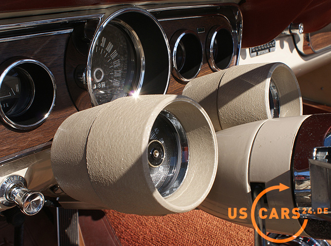 AUSSTATTUNG: C4 Automatikgetriebe, Bremskraft unterstützte Bremsen vorne, Servo unterstützte Lenkung, Elektrisches Cabrio Verdeck, Rally Pac, 5er Armatur, Holz Cockpit und Handschuhfachdeckel, Holz Lenkrad, USA-1 Retro Radio/Cassette mit AUX Eingang, Weisswand Bereifung, Cabriodach Persenning, Rückfahrscheinwerfer, GT Frontgrill mit Nebelscheinwerfern, GT Trumpet Doppel Auspuffanlage, GT Decor Streifen, GT Embleme, GT Tankverschluß, Chrom HIPO Luftfilter, Chrom Ventildeckel, Pony Innen-Ausstattung Beige, Sicherheitsgurte vorne, Tag/Nacht Innenspiegel, Einstiegsbeleuchtung, Außenspiegel auf Fahrer- und Beifahrerseite, Pony Fußmatten vorne und hinten, Leder Innen-Ausstattung, Alu Einstiegsleisten