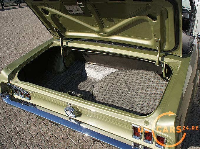 AUSSTATTUNG: C6 Cruise-O-Matic Automatikgetriebe, Servo unterstützte Lenkung, Bremskraft unterstützte Scheiben-Bremsen vorne, Elektrisches Cabrio Verdeck, Mittelkonsole Deluxe mit Alu-Vertäfelung, Tilt-Away Lenkrad, Styled Steel Wheels, GT Frontgrill mit Nebelscheinwerfern, GT Doppel Auspuffanlage mit 4 Endrohren, GT Decor Streifen, GT-A Embleme, GT Tankverschluß, Von innen verstellbarer Außenspiegel auf der Fahrerseite, Cabriodach Persenning, Seitliche Alu-Vertäfelung an der Karosserie, Rückfahrscheinwerfer, Neues Cabrio Verdeck mit Glasscheibe hinten, Getönte Verglasung, Pony Fußmatten, Tag/Nacht Innenspiegel, Leder Innen-Ausstattung, Alu Einstiegsleisten