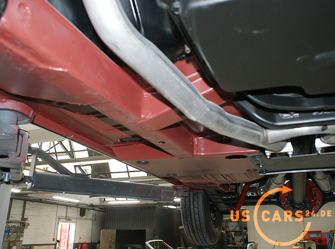Das Fahrzeug wurde komplett restauriert wobei großer Wert auf Originalität gelegt wurde. Der Unterboden wurde von uns mittels Eisstrahlen frei gelegt und in der Originalfarbe Red Oxide beschichtet. Der Unterboden ist komplett rostfrei.