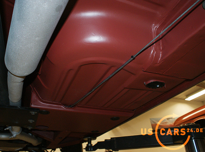 frei gelegt und in der Originalfarbe Red Oxide beschichtet. Der Unterboden