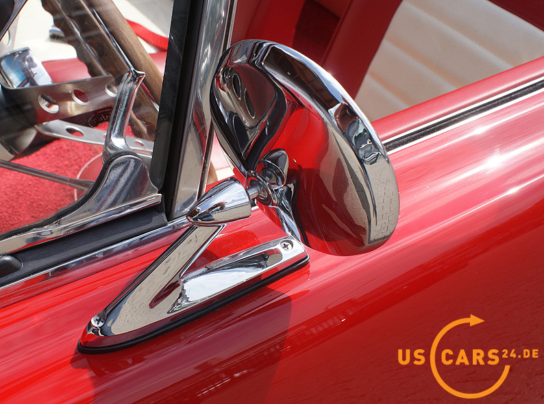 AUSSTATTUNG: C4 Cruise-O-Matic Automatikgetriebe, Bremskraft unterstützte Scheiben-Bremsen vorne, Servo-Lenkung, Elektrisches Cabrio Verdeck, Cabriodach Persenning, Pony Innen-Ausstattung, Pony Türverkleidungen, Leder Ausstattung zweifarbig Rot/Weiß, 5er Armatur, Holz Cockpit und Handschuhfachdeckel, Holz Lenkrad, Sicherheitsgurte vorne mit Pony-Emblem, Fußmatten mit Pony Emblem, Rückfahrscheinwerfer, Getönte Verglasung, Tag/Nacht Innenspiegel, Aussenspiegel auf Fahrer- und Beifahrerseite, Chrom HIPO Luftfilter und Ventildeckel, Chrom Motorölwanne, GT Doppel-Auspuff Anlage mit Trumpet Endstücken, GT Frontgrill mit Nebelscheinwerfern, GT Decor Streifen, GT Embleme, 14 Zoll Styled Steel Wheels mit neuer Weißwandbereifung etc.