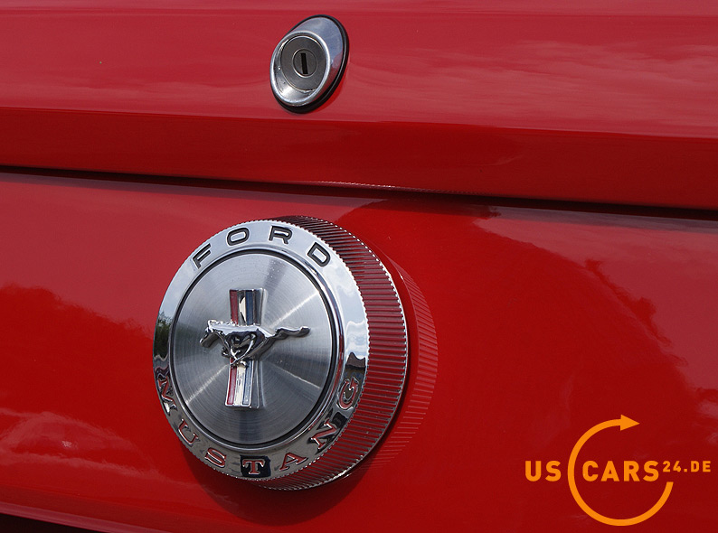 AUSSTATTUNG: C4 Cruise-O-Matic Automatikgetriebe, Bremskraft unterstützte Scheiben-Bremsen vorne, Servo-Lenkung, Elektrisches Cabrio Verdeck, Cabriodach Persenning, Pony Innen-Ausstattung, Pony Türverkleidungen, Leder Ausstattung zweifarbig Rot/Weiß, 5er Armatur, Holz Cockpit und Handschuhfachdeckel, Holz Lenkrad, Sicherheitsgurte vorne mit Pony-Emblem, Fußmatten mit Pony Emblem, Rückfahrscheinwerfer, Getönte Verglasung, Tag/Nacht Innenspiegel, Aussenspiegel auf Fahrer- und Beifahrerseite, Chrom HIPO Luftfilter und Ventildeckel, Chrom Motorölwanne, GT Doppel-Auspuff Anlage mit Trumpet Endstücken, GT Frontgrill mit Nebelscheinwerfern, GT Decor Streifen, GT Embleme, 14 Zoll Styled Steel Wheels mit neuer Weißwandbereifung etc.