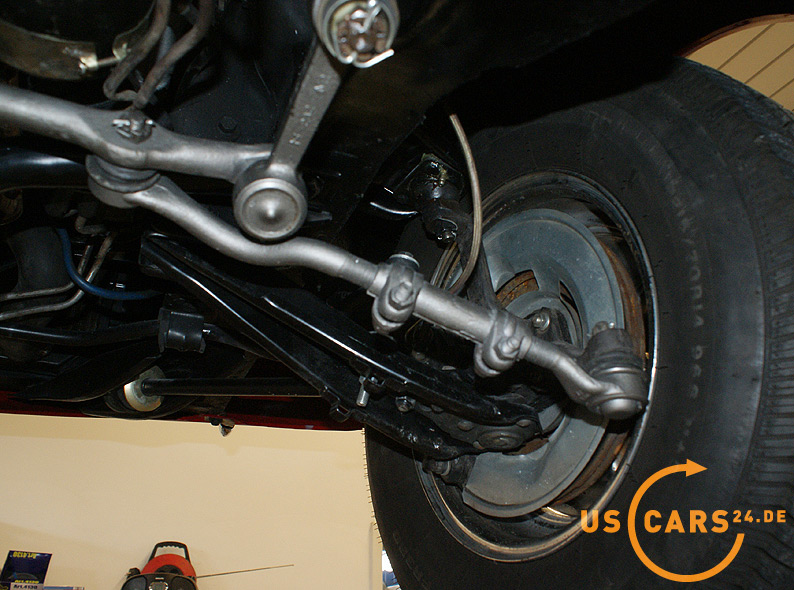 AUSSTATTUNG: C4 Cruise-O-Matic Automatikgetriebe, Bremskraft unterstützte Scheiben-Bremsen vorne, Servo-Lenkung, Elektrisches Cabrio Verdeck, Cabriodach Persenning, Pony Innen-Ausstattung, Pony Türverkleidungen, Leder Ausstattung zweifarbig Rot/Weiß, 5er Armatur, Holz Cockpit und Handschuhfachdeckel, Holz Lenkrad, Sicherheitsgurte vorne mit Pony-Emblem, Fußmatten mit Pony Emblem, Rückfahrscheinwerfer, Getönte Verglasung, Tag/Nacht Innenspiegel, Aussenspiegel auf Fahrer- und Beifahrerseite, Chrom HIPO Luftfilter und Ventildeckel, Chrom Motorölwanne, GT Doppel-Auspuff Anlage mit Trumpet Endstücken, GT Frontgrill mit Nebelscheinwerfern, GT Decor Streifen, GT Embleme, 14 Zoll Styled Steel Wheels mit neuer Weißwandbereifung etc.