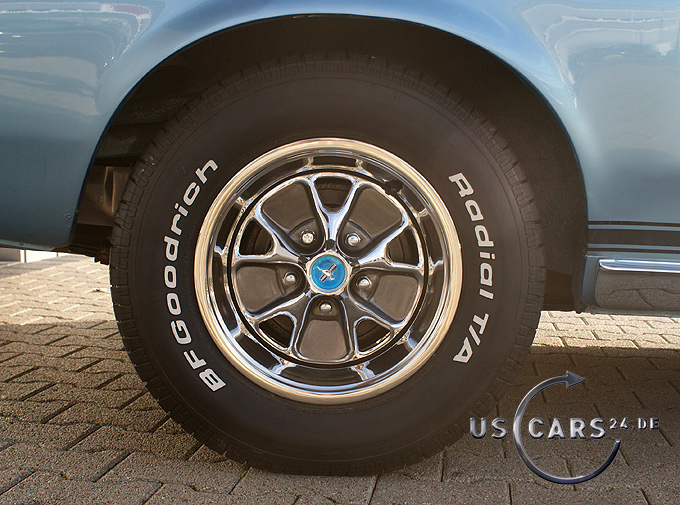AUSSTATTUNG: * C6 Cruise-O-Matic Automatik * Deluxe Innen-Ausstattung * Servo-Lenkung * Bremskraft unterstützte Scheiben-Bremsen vorne * Mittelkonsole * Holzlenkrad * Leder Innen-Ausstattung, Zweifarbig * Sicherheitsgurte vorne/hinten * Radio * Trap Door * Styled Steel Wheels * GT Frontgrill mit Nebelscheinwerfern * GT Doppel Auspuffanlage, 4-flammig * GT-A Embleme und Decor Streifen * GT Tankverschluß * Aussenspiegel Fahrerseite von innen verstellbar * Rückfahrscheinwerfer * Getönte Verglasung * Tag/Nacht Innenspiegel * Einstiegsbeleuchtung * Tür-Grill unten * Rocker Panel Moldings, Alu * Heckblech Verkleidung * Chrom Luftfilter und Ventildeckel - Powered by Ford * Chrom Export-Brace etc.