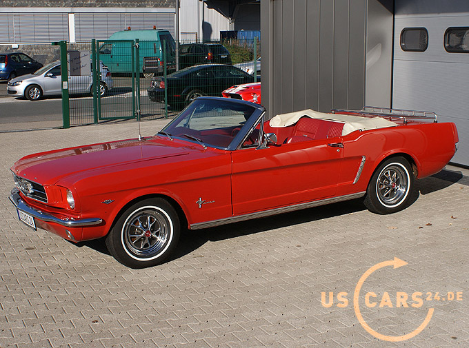289er 4.7L V8 Motor mit 4-Gang Schaltgetriebe, GT Styled Steel Wheels mit neuer Weisswand Bereifung, Elektrisches Cabrio Verdeck, Cabrio Persenning weiss, Original Mittelkonsole, Neue Pony Leder Innen-Ausstattung in zweifarbig Rot-Weiss, Sicherheitsgurte vorne und hinten, Aussenspiegel auf Fahrer- und Beifahrerseite, Gepäckträger auf Heckklappe, Chrom Luftfilter etc.