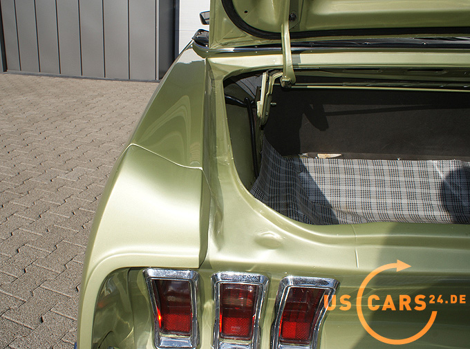 AUSSTATTUNG: C6 Cruise-O-Matic Automatikgetriebe, Servo unterstützte Lenkung, Bremskraft unterstützte Scheiben-Bremsen vorne, Elektrisches Cabrio Verdeck, Mittelkonsole Deluxe mit Alu-Vertäfelung, Tilt-Away Lenkrad, Styled Steel Wheels, GT Frontgrill mit Nebelscheinwerfern, GT Doppel Auspuffanlage mit 4 Endrohren, GT Decor Streifen, GT-A Embleme, GT Tankverschluß, Von innen verstellbarer Außenspiegel auf der Fahrerseite, Cabriodach Persenning, Seitliche Alu-Vertäfelung an der Karosserie, Rückfahrscheinwerfer, Neues Cabrio Verdeck mit Glasscheibe hinten, Getönte Verglasung, Pony Fußmatten, Tag/Nacht Innenspiegel, Leder Innen-Ausstattung, Alu Einstiegsleisten