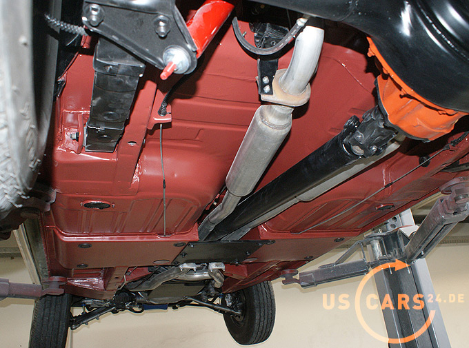 Das Fahrzeug wurde komplett restauriert wobei großer Wert auf Originalität gelegt wurde. Der Unterboden wurde von uns mittels Eisstrahlen frei gelegt und in der Originalfarbe Red Oxide beschichtet. Der Unterboden ist komplett rostfrei.