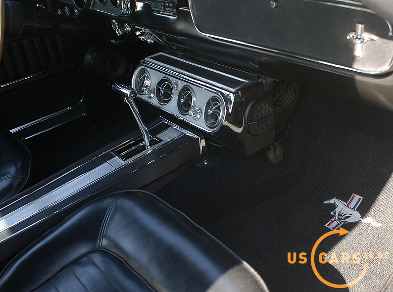 AUSSTATTUNG: C4 Cruise-O-Matic Automatikgetriebe, Zahnstangen-Lenkung manuell, Scheiben-Bremsen vorne, Ford Klima-Anlage, Kopfstützen höhenverstellbar, Mittelkonsole, 5er Armatur, Holzlenkrad, Sicherheitsgurte vorne/hinten, Fußmatten mit Pony Emblem, Stereo Radio/Cassette mit Mustang Schriftzug, Kickpanel Lautsprecher im Fußraum und in der hinteren Verkleidung, Trap Door, Rückfahrscheinwerfer, Chrom Einstiegsleisten, Getönte Verglasung, Tag/Nacht Innenspiegel, Aussenspiegel auf Fahrer- und Beifahrerseite, Alu-Ventildeckel Cobra - Powered by Ford, Aluminium Kühler, K + N Sport-Luftfilter, Stabilisator im Motorraum, Chrom Motorölwanne, GT Doppel-Auspuff Anlage mit Trumpet Endstücken, GT Frontgrill mit Nebelscheinwerfern, GT Tankdeckel, GT Streifen und Embleme, 15 Zoll American Racing Torque Thrust Bullit Felgen inkl. Reserverad etc.
