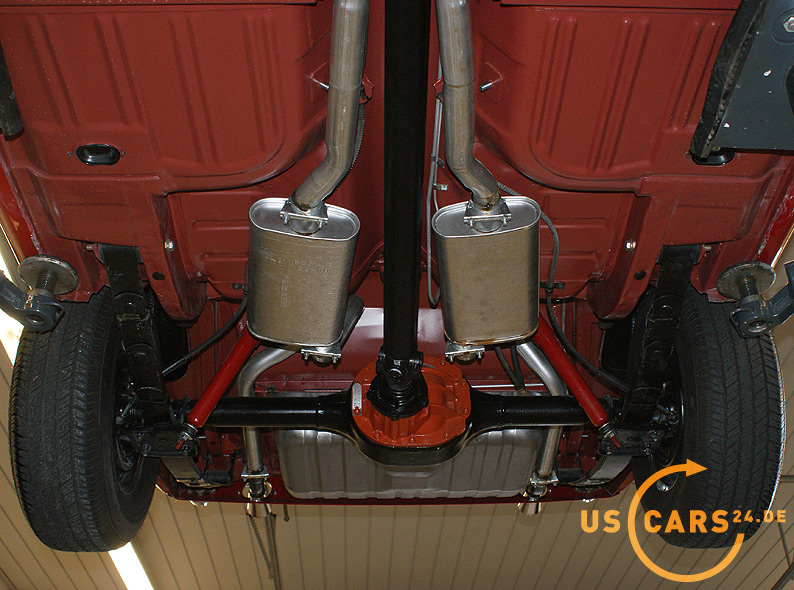 AUSSTATTUNG: C4 Cruise-O-Matic Automatikgetriebe, Bremskraft unterstützte Scheiben-Bremsen vorne, Servo-Lenkung, Elektrisches Cabrio Verdeck, Cabriodach Persenning, Pony Innen-Ausstattung, Pony Türverkleidungen, Leder Ausstattung zweifarbig Rot/Weiß, 5er Armatur, Holz Cockpit und Handschuhfachdeckel, Holz Lenkrad, Sicherheitsgurte vorne mit Pony-Emblem, Fußmatten mit Pony Emblem, Rückfahrscheinwerfer, Getönte Verglasung, Tag/Nacht Innenspiegel, Aussenspiegel auf Fahrer- und Beifahrerseite, Chrom HIPO Luftfilter und Ventildeckel, Chrom Motorölwanne, GT Doppel-Auspuff Anlage mit Trumpet Endstücken, GT Frontgrill mit Nebelscheinwerfern, GT Decor Streifen, GT Embleme, 14 Zoll Styled Steel Wheels mit neuer Weißwandbereifung etc.