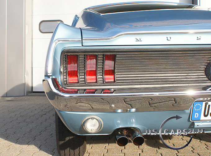 AUSSTATTUNG: * C6 Cruise-O-Matic Automatik * Deluxe Innen-Ausstattung * Servo-Lenkung * Bremskraft unterstützte Scheiben-Bremsen vorne * Mittelkonsole * Holzlenkrad * Leder Innen-Ausstattung, Zweifarbig * Sicherheitsgurte vorne/hinten * Radio * Trap Door * Styled Steel Wheels * GT Frontgrill mit Nebelscheinwerfern * GT Doppel Auspuffanlage, 4-flammig * GT-A Embleme und Decor Streifen * GT Tankverschluß * Aussenspiegel Fahrerseite von innen verstellbar * Rückfahrscheinwerfer * Getönte Verglasung * Tag/Nacht Innenspiegel * Einstiegsbeleuchtung * Tür-Grill unten * Rocker Panel Moldings, Alu * Heckblech Verkleidung * Chrom Luftfilter und Ventildeckel - Powered by Ford * Chrom Export-Brace etc.