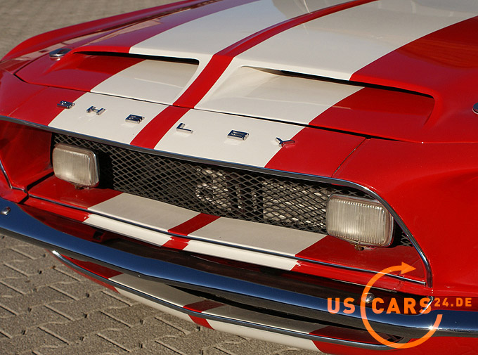 351er Windsor 5.8L V8 Motor mit C6 Automatikgetriebe, Kompletter Shelby GT350 Umbau - Shelby Front, Shelby Motorhaube mit Twist Lock, Shelby Heck mit Spoiler, Shelby Rückleuchten, Shelby Tankverschluss, Shelby Embleme, Shelby Rally Streifen over the top und an den Einstiegen, Shelby Side Scoops, Shelby Window Scoops, Cobra Lenkrad - Konsolendeckel und Schaltknauf, Sicherheitsgurte mit Shelby Emblem, Gurthalter in der Mittelkonsole, 15 Zoll Shelby Alufelgen mit neuer Goodyaer Eagle II Bereifung in der Größe 235/60 R15, Cobra Luftfilter, Doppel-Auspuff, Servo Lenkung, bremskraftunterstützte Bremsen vorne, Nebelscheinwerfer, Leder-Ausstattung, Innenraum mit Holzakzenten und Cobra Jet Emblem, Umlegbare Rücksitzbank, Cockpit mit 5 Armaturen, Drehzahlmesser Zusatzarmatur von Sun Super auf der Lenksäule, Zusatzarmaturen von Sunpro in der Mittelkonsole für Öldruck und Motortemperatur, Volle Mittelkonsole etc.