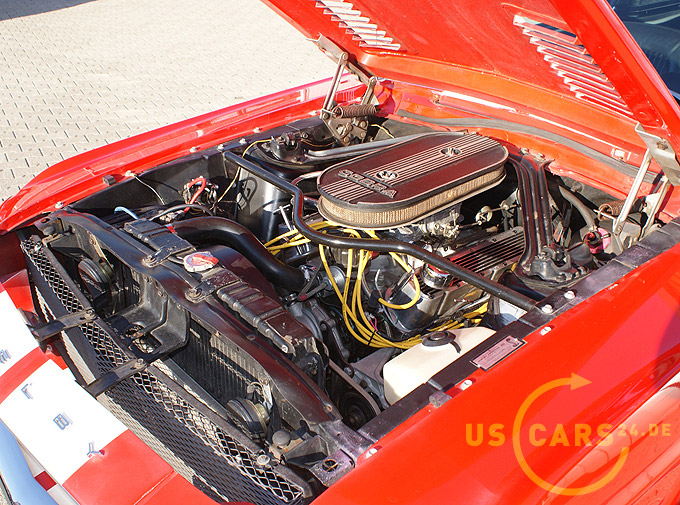 351er Windsor 5.8L V8 Motor mit C6 Automatikgetriebe, Kompletter Shelby GT350 Umbau - Shelby Front, Shelby Motorhaube mit Twist Lock, Shelby Heck mit Spoiler, Shelby Rückleuchten, Shelby Tankverschluss, Shelby Embleme, Shelby Rally Streifen over the top und an den Einstiegen, Shelby Side Scoops, Shelby Window Scoops, Cobra Lenkrad - Konsolendeckel und Schaltknauf, Sicherheitsgurte mit Shelby Emblem, Gurthalter in der Mittelkonsole, 15 Zoll Shelby Alufelgen mit neuer Goodyaer Eagle II Bereifung in der Größe 235/60 R15, Cobra Luftfilter, Doppel-Auspuff, Servo Lenkung, bremskraftunterstützte Bremsen vorne, Nebelscheinwerfer, Leder-Ausstattung, Innenraum mit Holzakzenten und Cobra Jet Emblem, Umlegbare Rücksitzbank, Cockpit mit 5 Armaturen, Drehzahlmesser Zusatzarmatur von Sun Super auf der Lenksäule, Zusatzarmaturen von Sunpro in der Mittelkonsole für Öldruck und Motortemperatur, Volle Mittelkonsole etc.