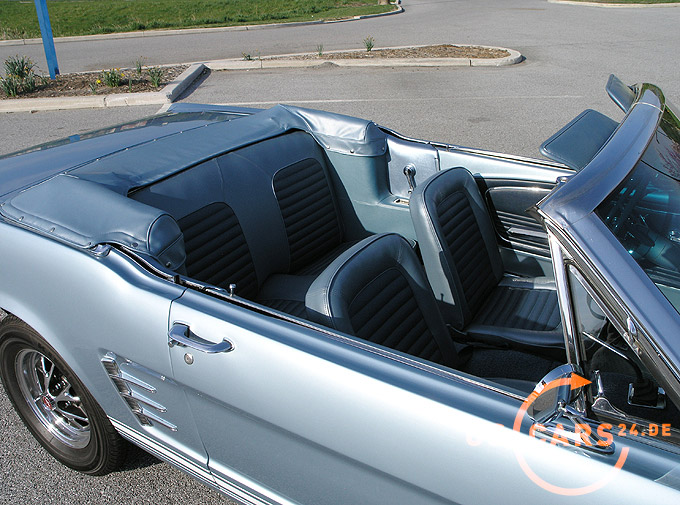 AUSSTATTUNG: 289er 4.7L V8 Motor mit Schaltgetriebe, GT Frontgrill mit Nebelscheinwerfern, GT Trumpet Doppel-Auspuff, GT Styled Steel Wheels mit neuer 205/70/R14 Bereifung, GT Decor und Embleme, GT Tankverschluss, Original Leder Innen-Ausstattung zweifarbig, Servo-Lenkung, Sicherheitsgurte vorne und hinten, Elektrisches Cabrio Verdeck, Cabrio Persenning, Interior Lighting Paket, Aussenspiegel auf Fahrer- und Beifahrerseite, Cockpit mit 5 Armaturen etc.