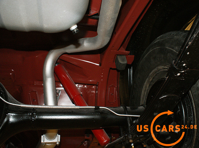Das Fahrzeug wurde komplett restauriert und dabei im Originalzustand und in der Originalfarbe belassen. Der Unterboden wurde von uns mittels Eisstrahlen frei gelegt und in der Originalfarbe Red Oxide beschichtet. Der Unterboden ist komplett rostfrei.