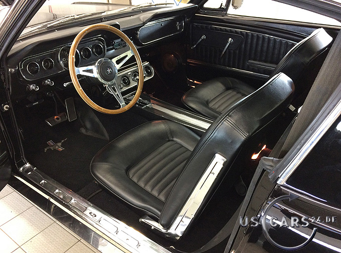 C4 Cruise-O-Matic Automatikgetriebe, Zahnstangen-Lenkung, Manuell, Scheiben-Bremsen vorne, Ford Klima-Anlage, Mittelkonsole, 5er Armatur, Holzlenkrad, Sicherheitsgurte vorne/hinten, Fußmatten mit Pony Emblem, Stereo Radio/Cassette mit Mustang Schriftzug, Kickpanel Lautsprecher im Fußraum und in der hinteren Verkleidung, Trap Door, Rückfahrscheinwerfe, Chrom Einstiegsleisten, Getönte Verglasung, Tag/Nacht Innenspiegel, Aussenspiegel auf Fahrer- und Beifahrerseite, Chrom Ventildeckel, Chrom Luftfilter, Chrom Motorölwanne, Aluminium Kühler, Stabilisator im Motorraum, GT Doppel-Auspuff Anlage mit Trumpet Endstücken, GT Frontgrill mit Nebelscheinwerfern, GT Tankdeckel, GT Streifen und Embleme, 16 Zoll American Racing Torque Thrust Bullit Felgen etc.