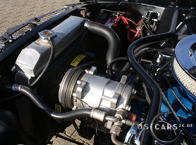C4 Cruise-O-Matic Automatikgetriebe, Zahnstangen-Lenkung, Manuell, Scheiben-Bremsen vorne, Ford Klima-Anlage, Mittelkonsole, 5er Armatur, Holzlenkrad, Sicherheitsgurte vorne/hinten, Fußmatten mit Pony Emblem, Stereo Radio/Cassette mit Mustang Schriftzug, Kickpanel Lautsprecher im Fußraum und in der hinteren Verkleidung, Trap Door, Rückfahrscheinwerfe, Chrom Einstiegsleisten, Getönte Verglasung, Tag/Nacht Innenspiegel, Aussenspiegel auf Fahrer- und Beifahrerseite, Chrom Ventildeckel, Chrom Luftfilter, Chrom Motorölwanne, Aluminium Kühler, Stabilisator im Motorraum, GT Doppel-Auspuff Anlage mit Trumpet Endstücken, GT Frontgrill mit Nebelscheinwerfern, GT Tankdeckel, GT Streifen und Embleme, 16 Zoll American Racing Torque Thrust Bullit Felgen etc.