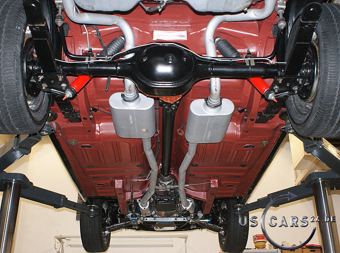 C4 Cruise-O-Matic Automatikgetriebe, Zahnstangen-Lenkung, Manuell, Scheiben-Bremsen vorne, Ford Klima-Anlage, Mittelkonsole, 5er Armatur, Holzlenkrad, Sicherheitsgurte vorne/hinten, Fußmatten mit Pony Emblem, Stereo Radio/Cassette mit Mustang Schriftzug, Kickpanel Lautsprecher im Fußraum und in der hinteren Verkleidung, Trap Door, Rückfahrscheinwerfe, Chrom Einstiegsleisten, Getönte Verglasung, Tag/Nacht Innenspiegel, Aussenspiegel auf Fahrer- und Beifahrerseite, Chrom Ventildeckel, Chrom Luftfilter, Chrom Motorölwanne, Aluminium Kühler, Stabilisator im Motorraum, GT Doppel-Auspuff Anlage mit Trumpet Endstücken, GT Frontgrill mit Nebelscheinwerfern, GT Tankdeckel, GT Streifen und Embleme, 16 Zoll American Racing Torque Thrust Bullit Felgen etc.