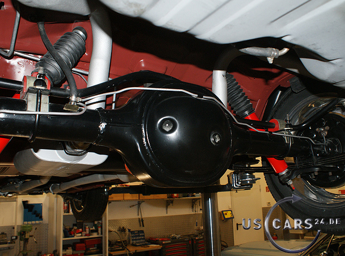 C4 Cruise-O-Matic Automatikgetriebe, Zahnstangen-Lenkung, Manuell, Scheiben-Bremsen vorne, Ford Klima-Anlage, Mittelkonsole, 5er Armatur, Holzlenkrad, Sicherheitsgurte vorne/hinten, Fußmatten mit Pony Emblem, Stereo Radio/Cassette mit Mustang Schriftzug, Kickpanel Lautsprecher im Fußraum und in der hinteren Verkleidung, Trap Door, Rückfahrscheinwerfe, Chrom Einstiegsleisten, Getönte Verglasung, Tag/Nacht Innenspiegel, Aussenspiegel auf Fahrer- und Beifahrerseite, Chrom Ventildeckel, Chrom Luftfilter, Chrom Motorölwanne, Aluminium Kühler, Stabilisator im Motorraum, GT Doppel-Auspuff Anlage mit Trumpet Endstücken, GT Frontgrill mit Nebelscheinwerfern, GT Tankdeckel, GT Streifen und Embleme, 16 Zoll American Racing Torque Thrust Bullit Felgen etc.