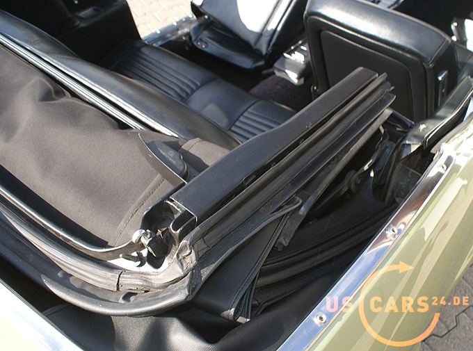 AUSSTATTUNG: C6 Cruise-O-Matic Automatikgetriebe, Servo unterstützte Lenkung, Bremskraft unterstützte Scheiben-Bremsen vorne, Elektrisches Cabrio Verdeck, Mittelkonsole Deluxe mit Alu-Vertäfelung, Tilt-Away Lenkrad, Styled Steel Wheels, GT Frontgrill mit Nebelscheinwerfern, GT Doppel Auspuffanlage mit 4 Endrohren, GT Decor Streifen, GT-A Embleme, GT Tankverschluß, Von innen verstellbarer Außenspiegel auf der Fahrerseite, Cabriodach Persenning, Seitliche Alu-Vertäfelung an der Karosserie, Rückfahrscheinwerfer, Neues Cabrio Verdeck mit Glasscheibe hinten, Getönte Verglasung, Pony Fußmatten, Tag/Nacht Innenspiegel, Leder Innen-Ausstattung, Alu Einstiegsleisten